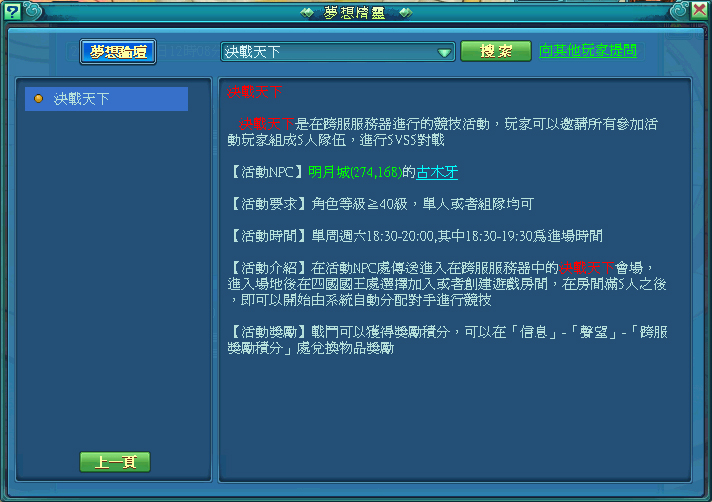 1、在活動NPC處傳送至跨服伺服器的決戰天下會場。